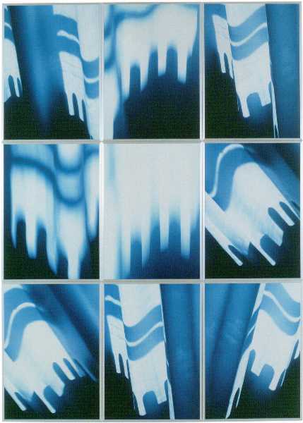 Doch welchen Regeln oder Ordnungen folgt solch ein Formspiel? Was paßt, was paßt nicht? Gaffron spielt mit der Harmonie und deren Brechungen. Die neunteiligen Tableaus zum Beispiel überziehen zunächst einmal das gesamte Bild mit einem gleichmäßigen Raster von Bilderrahmen, die dreiteiligen Arbeiten, bei denen zwei gleichartige Formen ein mittleres Andersartiges geradezu rahmen, balancieren ihre Gewichte aus; Linien führen von einem Einzelbild ins andere weiter. Dann aber werden diese Linien unterbrochen, die Symmetrien kippen, Spannungsfelder bauen sich auf, formale Schwerpunkte werden gesetzt, um vielleicht dann doch wieder in einem Kontrapunkt aufgefangen zu werden. Ist man einmal von der Bedeutung und der Gegenständlichkeit des Abgebildeten befreit, dann sieht man die Formen in einem unendlichen Reichtum. Die Leserichtung scheint durch keine vorgegebenen Muster mehr eingeschränkt zu sein. Und man sieht das Schöne, da wo man es wahrscheinlich am wenigsten wirklich erwartet hätte: Im freien Spiel der Formen und Rhythmen, der Harmonien und Disharmonien. Und plötzlich scheint es für das sinnliche Erleben der Fotografie keine Grenzen mehr zu geben. Eine Anarchie der Bildpunkte, der Signifikanten ohne Signifikat?