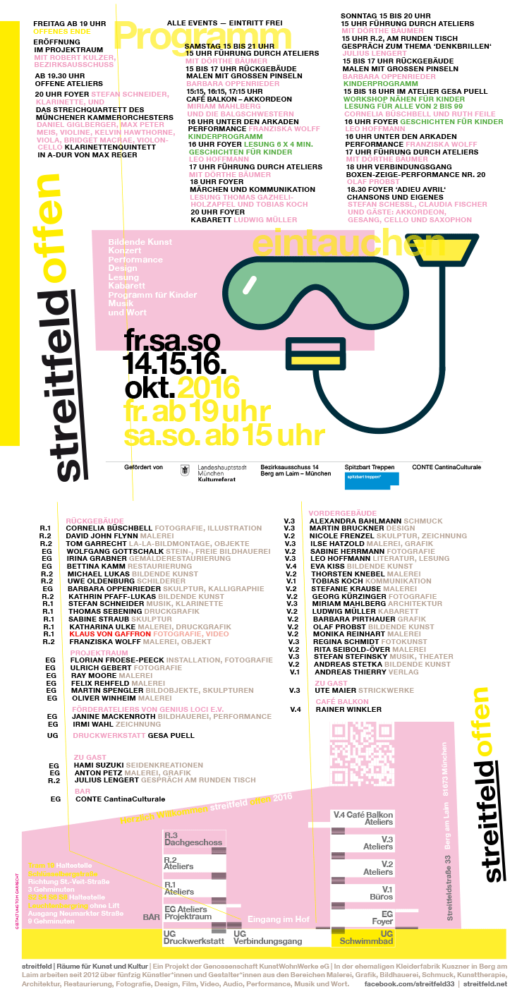 Für streitfeld offen 2016 öffnen ca. 40 KünstlerInnen und GestalterInnen wieder ihre Türen.